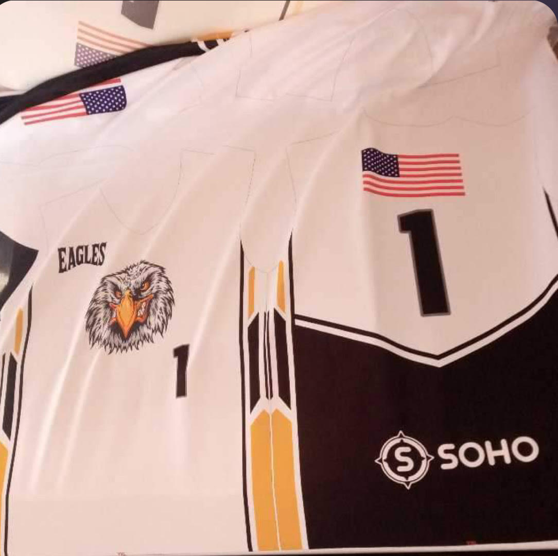 Team logo and colors, we can make just about any custom jersey and color scheme.