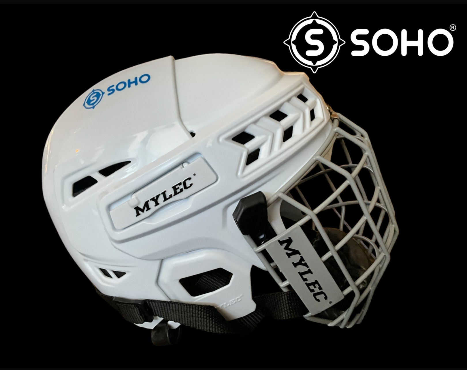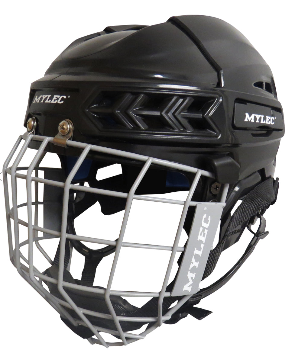 The MYLEC MK7. Two part shell construction, two part helmet liner with IMPACT DEADENING LAYER, COOL GEL COMFORT LINER, quick flip tool-less adjustment system, direct vision cage design, custome side ear guard system, and an adjustable comfort foam chin cup.