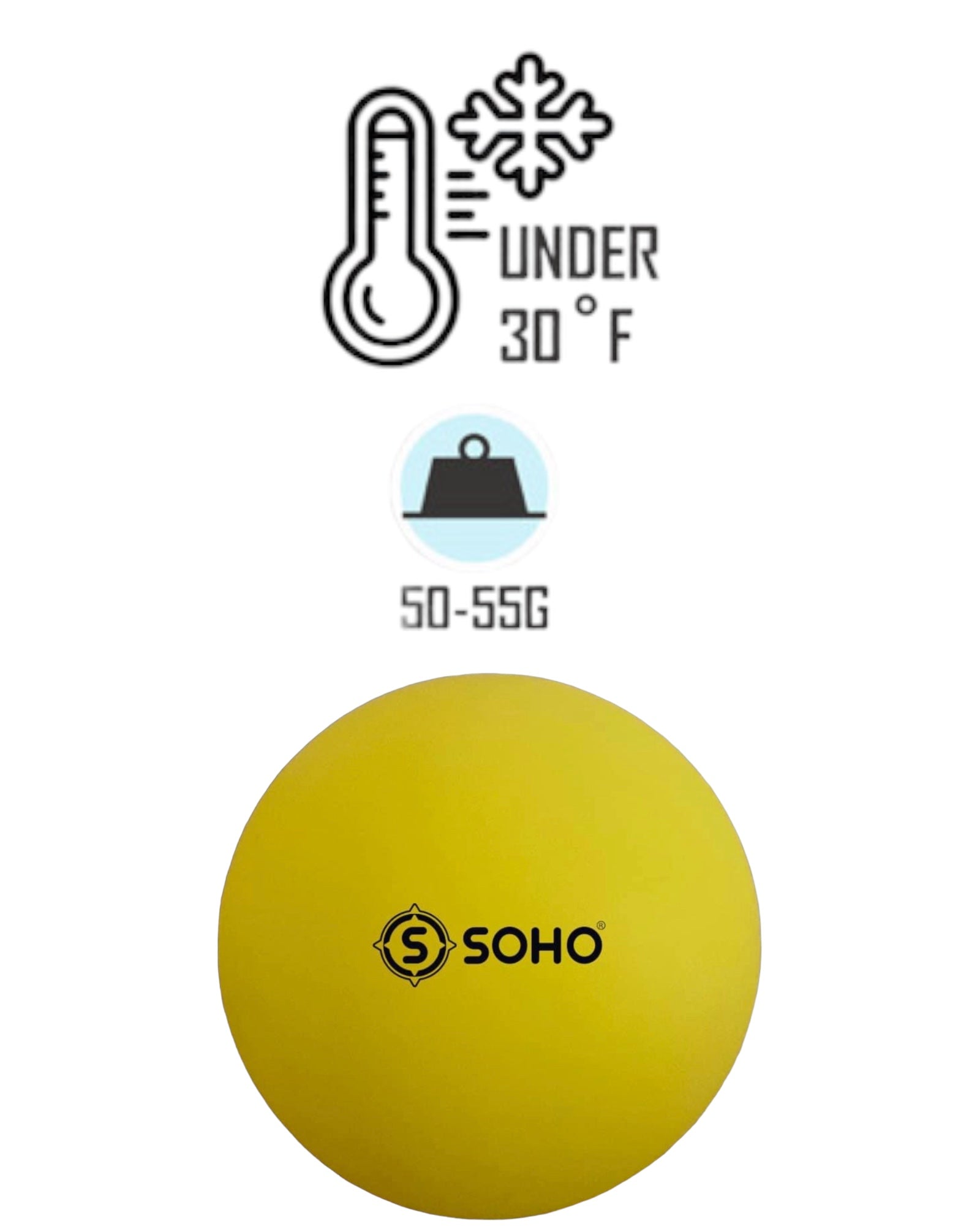 The SOHO HD OFFICIAL HOCKEY BALL is a 55-gram HIGH DENSITY ball with low bounce technology and engineered durability.