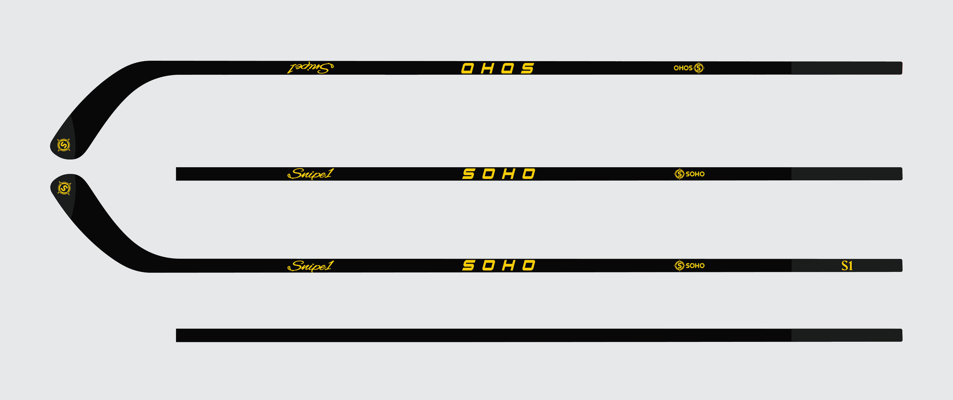 NEW SOHO SR Snipe 1 Black Edition, Carbon Fiber performance stick. 360 grams in weight and 66" in length with a 80 Flex Mid Kick Shaft designed for quick release and complimented by a P82 Blade. Currently three black-edition color options available in Black/Yellow, Black/Orange and Black/Red.
